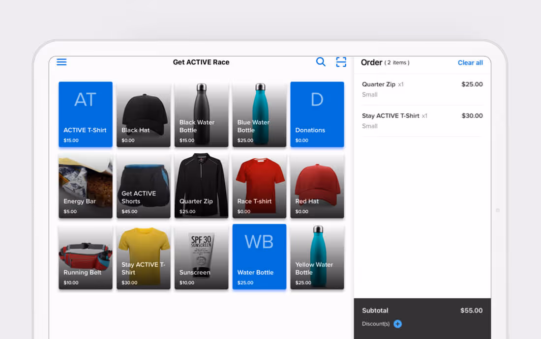 Sell to participants and spectators alike while increasing your sales reach with ACTIVE's POS app. This powerful app consolidates your inventory and revenue without the use of third-party vendors and numerous comparison reports.
