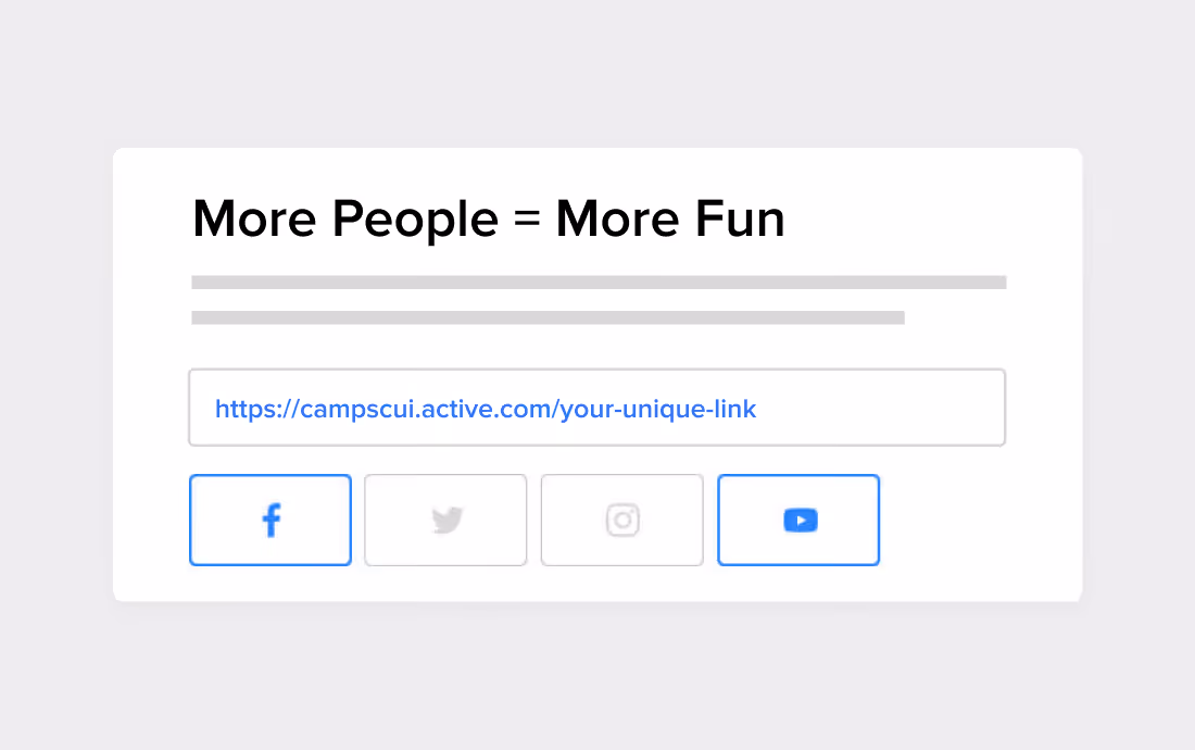 Participants can share their plans or activities at your camps and programs with their friends on social media through social sharing buttons built into the registration process.